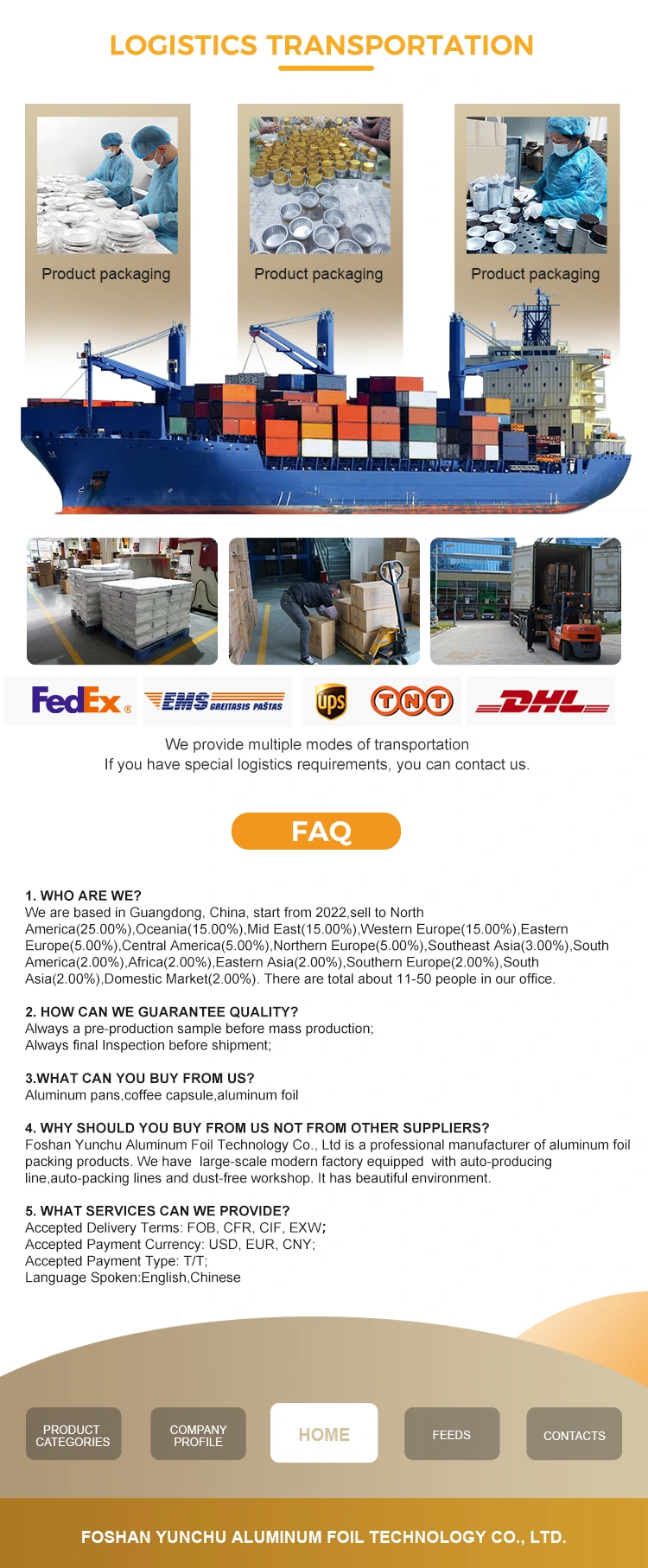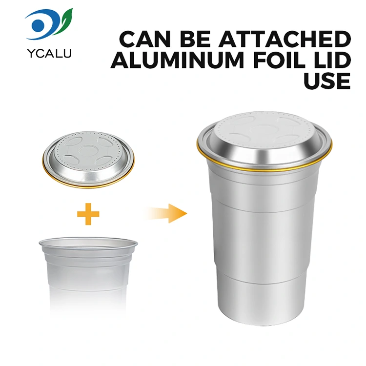 Yunchu je vodilni proizvajalec skodelic za pijačo iz aluminijaste folije za enkratno uporabo 16oz za enkratno uporabo na Kitajskem. Ta skodelica za pitje iz aluminijaste folije po meri za 16 oz za enkratno uporabo je 460-mililitrska skodelica iz aluminijaste folije, primerna za standardne pijače, kot sta kava in pivo. Ima standardiziran dizajn in je namenjen predvsem komercialnim uporabnikom, kot so kavarne in obrtniški bari s pogostimi potrebami po prilagajanju. Medtem ko zagotavlja učinkovito toplotno prevodnost in osnovno zmogljivost tesnjenja, ta skodelica za pijačo iz aluminijaste folije za 16 oz za enkratno uporabo, ki jo je mogoče reciklirati, daje večji poudarek hitrim in prilagodljivim storitvam vizualnega prilagajanja blagovne znamke.