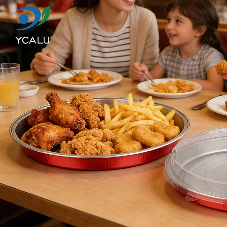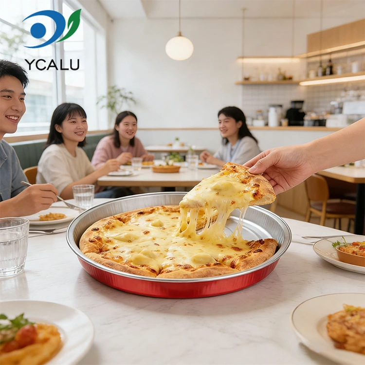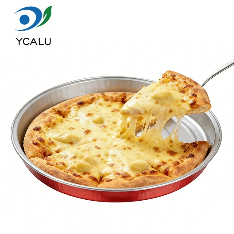 Yunchu Aluminium Foil Supplier C900 Enkratna embalaža za pekače za pico, okrogla posoda iz aluminijaste folije je izdelana iz surove aluminijaste folije, primerne za živila, brez vonja in nečistoč, zaradi česar se je varno dotikati hrane z zaupanjem. Debelina je enakomerna in trdna, prenese visoke temperature do 250°C in nizke temperature do -20°C. Sveže vročo pico lahko postrežete neposredno. Lahko ga ohladite in ohranite svežega, ne da bi menjali posodo. Lahko se uživa neposredno s segrevanjem, kar močno izboljša učinkovitost dostave hrane in prihrani težave s čiščenjem. Prevleka PET iz aluminijaste folije učinkovito blokira vdor vodne pare in zraka ter preprečuje uhajanje maščobe. Klasičen okrogel lok se natančno prilega vsem vrstam oblik pice, na voljo je več velikosti od 7 do 9 palcev. Popolnoma je primeren za različne specifikacije, kot so ročno izdelana pica, italijanska pica in ameriška debela skorja. Ni dodatnega prostora, ki bi preprečil drsenje pice in odpadanje dodatkov. Postopek oblikovanja iz enega kosa ustvari stabilno obliko, je odporen na pritisk in trčenje ter se med transportom ne deformira ali poškoduje zlahka. Prav tako lahko ohrani svojo obliko, ko je zložena in shranjena, s čimer popolnoma odpravi težavo, ki jo povzroča hitro poškodovana embalaža za hrano, in zagotovi, da je vsaka pica dostavljena v dobrem stanju.