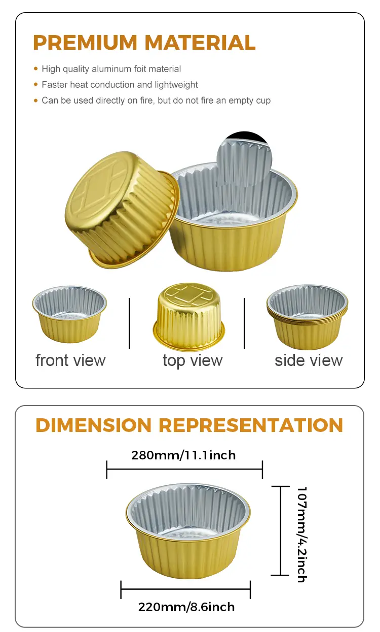 • Zlato okrogle aluminijaste folije za enkratno uporabo za enkratno uporaboZlato okrogle aluminijaste folije za enkratno uporabo za enkratno uporabo