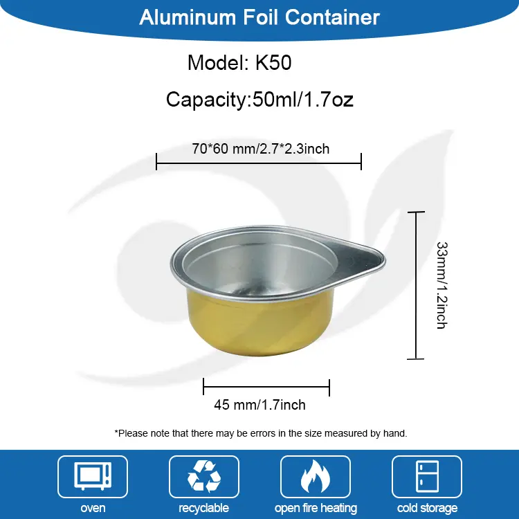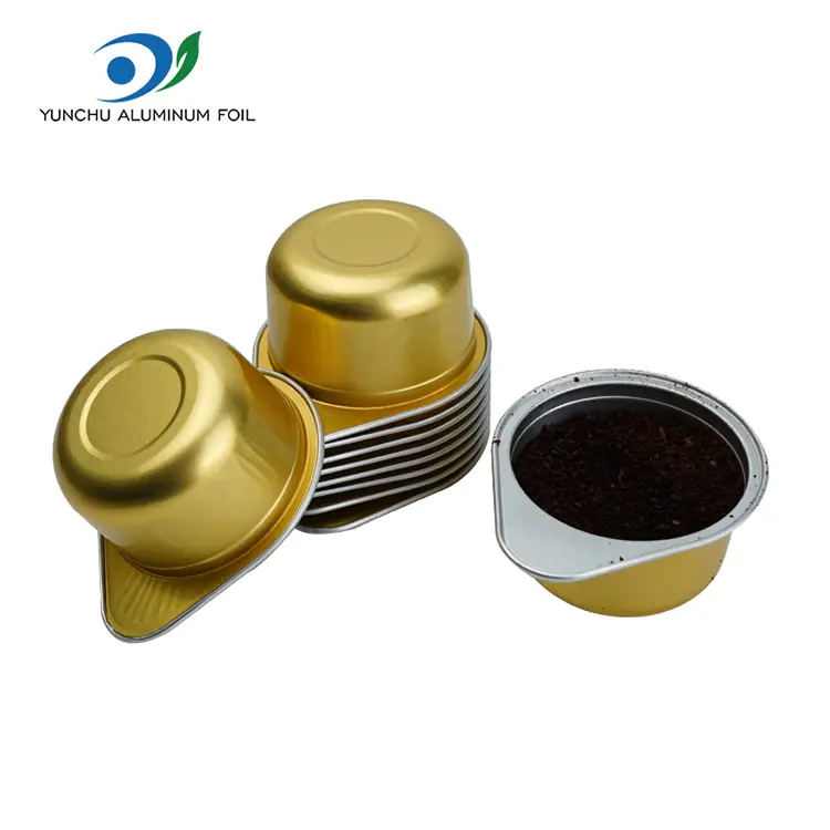 Dobavitelj aluminijaste folije Yunchu K50 Toplotno zatesnjena prazna kavna kapsula brez silikona Zgornji del kapsule: 70*60 mm, 2,7*2,3 palca, osnova: 45 mm, 1,7 palca, višina: 33 mm 1,2 palca, lahko sprejme 50 ml 1,9 oz hrane, lahko se uporablja za vse aparate za kavo Nespresso (nespresso), pakiran espresso v prahu ali splaknjen z dušikom za podaljšan rok trajanja.