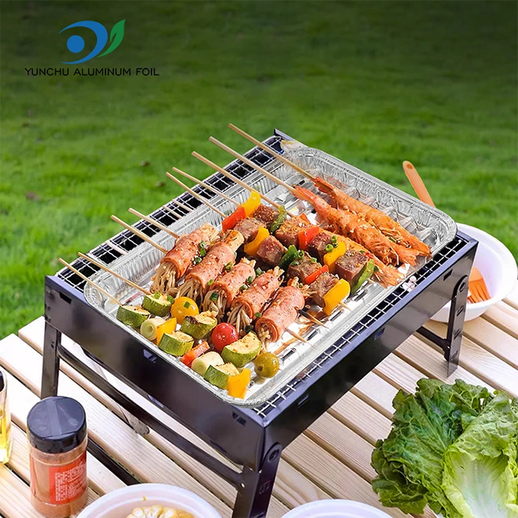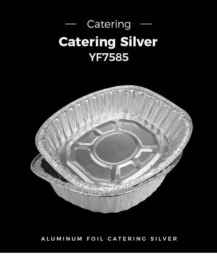 Yunchu aluminum foil wholesale Large capacity grilled chicken griddle Silver Aluminum Foil Containers, large capacity can be adapted to a wide range, the scene is the same, takeaway, wholesale flow suppliers, large parties, can provide large portions of restaurants, prefabricated dishes, restaurant refrigeration and other places that need to be used, large gatherings and company dinners are also suitable, the product can support equipment heating, can be immediately heated In uporabljena v zunanjih in drugih scenarijih, celotna struktura združuje ojačevalce in dno navadne konkavne in izbočene oblike, tako da sta zagotovljena njegova trajnost in varnost.