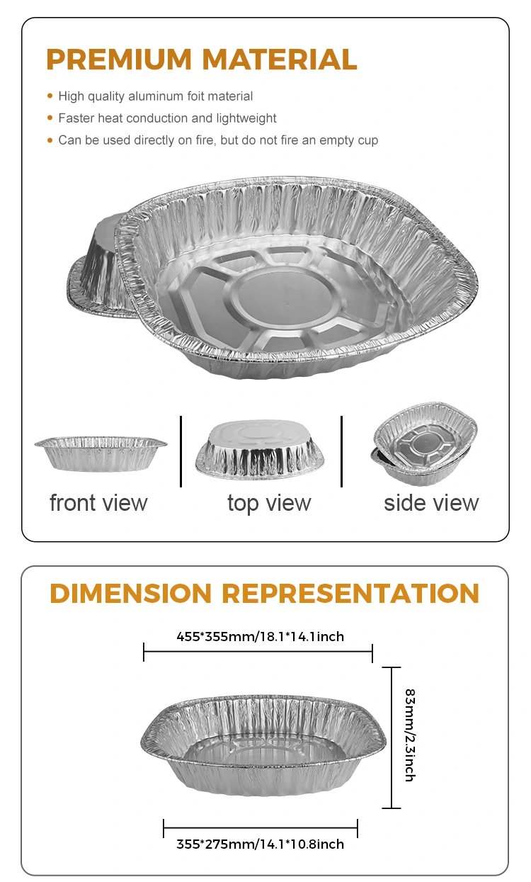 ​Yunchu aluminum foil wholesale Large capacity grilled chicken griddle Silver Aluminum Foil Containers, large capacity can be adapted to a wide range, the scene is the same, takeaway, wholesale flow suppliers, large parties, can provide large portions of restaurants, prefabricated dishes, restaurant refrigeration and other places that need to be used, large gatherings and company dinners are also suitable, the product can support equipment heating, can be immediately heated In uporabljena v zunanjih in drugih scenarijih, celotna struktura združuje ojačevalce in dno navadne konkavne in izbočene oblike, tako da sta zagotovljena njegova trajnost in varnost.
