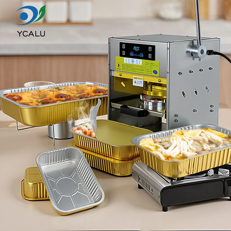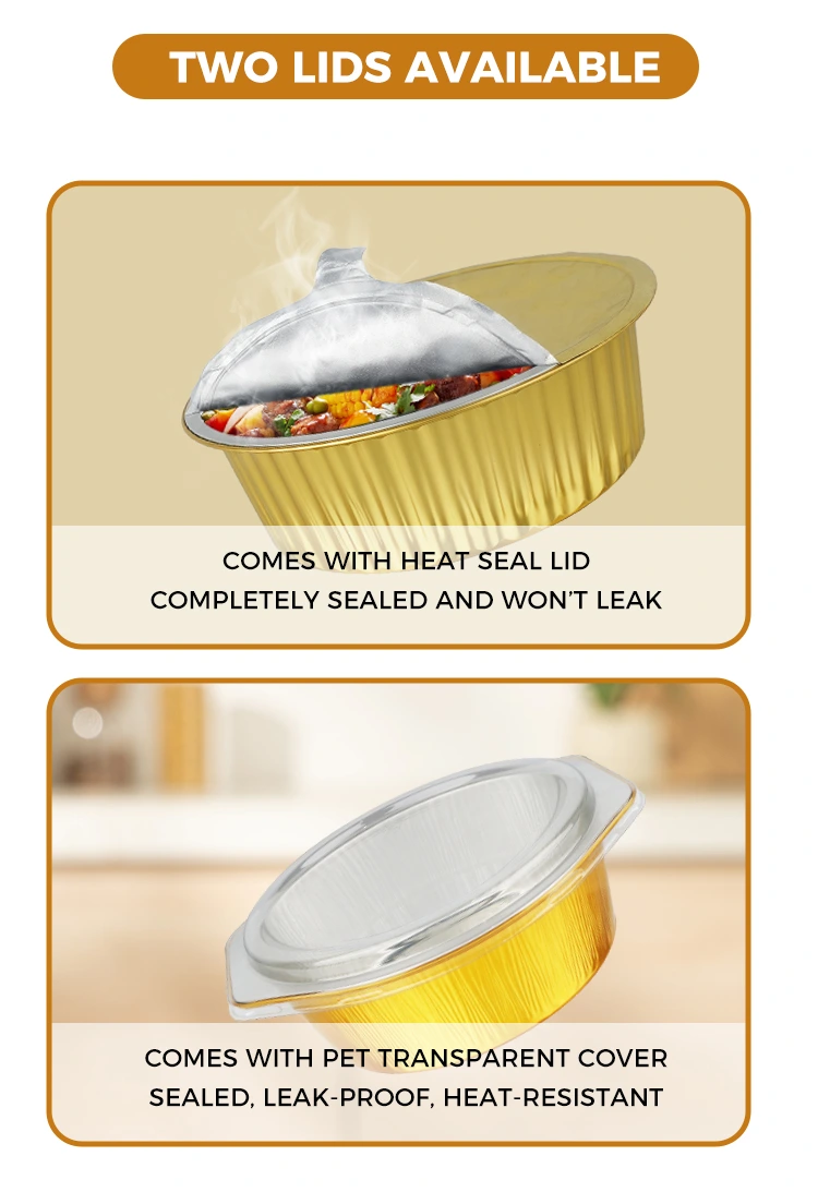 Yunchu ima lastno tovarno in je proizvajalec in dobavitelj stroja za ročno toplotno zapiranje z zlatimi posodami iz aluminijaste folije na Kitajskem. Uporablja materiale, primerne za živila, ter je varen in brezskrben. Narejen je iz aluminijaste folije/PP materiala, primernega za živila, in je prestal verodostojne varnostne teste, je brez vonja, odporen na visoke in nizke temperature (-20 ℃ do 220 ℃) ​​in ga je mogoče neposredno segreti v mikrovalovni pečici, pečiti v pečici ali zamrzniti za shranjevanje, s čimer izpolnjuje različne potrebe po predelavi in ​​konzerviranju hrane ter potrošnikom zagotavlja močan občutek varnosti.