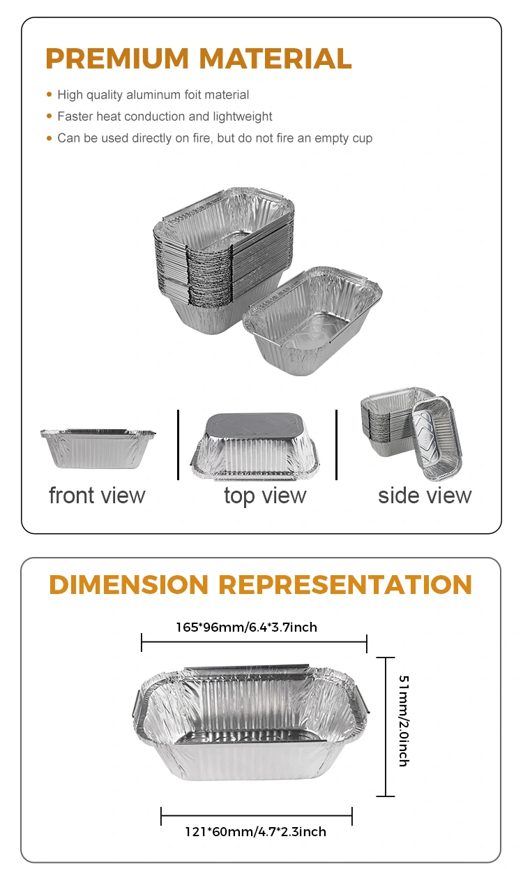 Rekustatene posode za aluminijaste folije iz leta 2044 iz leta 2044 iz leta 2044 iz aluminijaste folije Yunchu so primerne za različne scenarije, ne glede na to, ali gre za zunanji žar ali družinsko druženje. Trgovci lahko prilagodijo vzorce in tiskanje glede na njihove potrebe, zaradi česar je edinstvena izbira za embalažo za odvzem, ki pritegne oko strank. Kontejner podpira odprto ogrevanje plamena in ogrevanje oljnih svetilk ter enakomerno vodi toploto, kar zagotavlja, da se hrana enakomerno segreva in da se ni enostavno držati ponve. Uporablja se lahko takoj, tudi če je nameščen v zračnem cvrtniku, konkavna in konveksna zasnova na dnu pa poveča trenje in prepreči zdrs. Tkiffenerji na straneh povečujejo trdnost izdelka, medtem ko zasnova hemming zagotavlja prileganje na pokrov, ki se učinkovito zaklene pri temperaturi hrane.