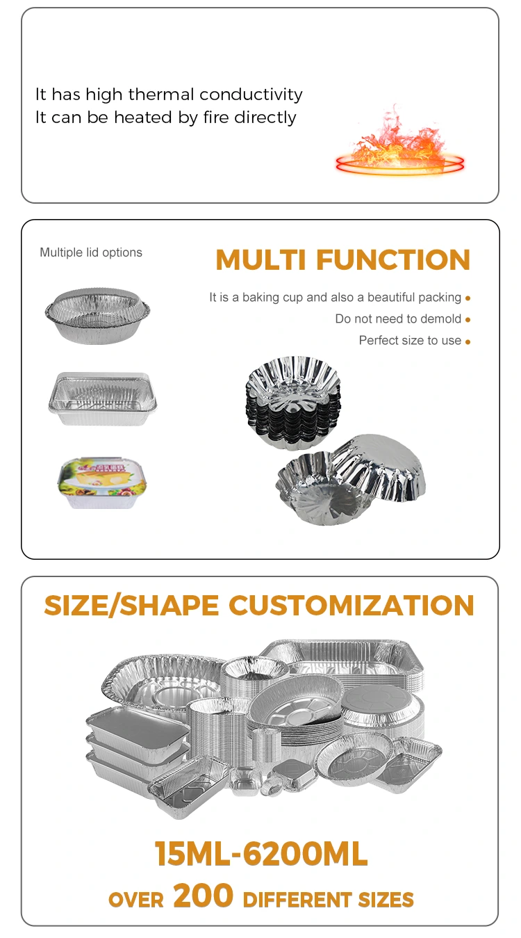 Yunchu aluminum foil supplier Round egg tart toy baking Silver Aluminum Foil Food Container, to meet different tastes, a variety of sizes to choose from, aluminum foil material is safe and non-toxic, made of aluminum foil material, with good thermal conductivity, safe and non-toxic for a variety of uses, better use, easy non-stick mold, smooth cup wall, bamboo skewer gently Odtrgana, lahka za jesti, močna toplotna prevodnost, material aluminijaste folije ni enostavno deformirati, vodoodporna/olja, dobra toplotna prevodnost, lahko damo v parnik, zračni cvrker, žar itd., Je na voljo različne sloge, ki so na voljo različni plošči in na voljo, lahko na voljo jajčni plošči in drugim, lahko naredijo jajčne plošče in drugi plošči, ki lahko naredijo jajčne plošče in drugi plošči, lahko naredijo jajčne plošče in drugi ponvi, lahko pa lahko nakup jajčnih plošč in drugih ponvov, ki lahko naredijo jajčne plošče in drugi plošči. Prigrizki, valovni kalupi, končni izdelek je čudovit, ni enostaven za deformiranje, dolgotrajno paro, pečenje se ne bo deformiralo ali razpokalo, da bi bil videz izdelka za dokončanje učinka.