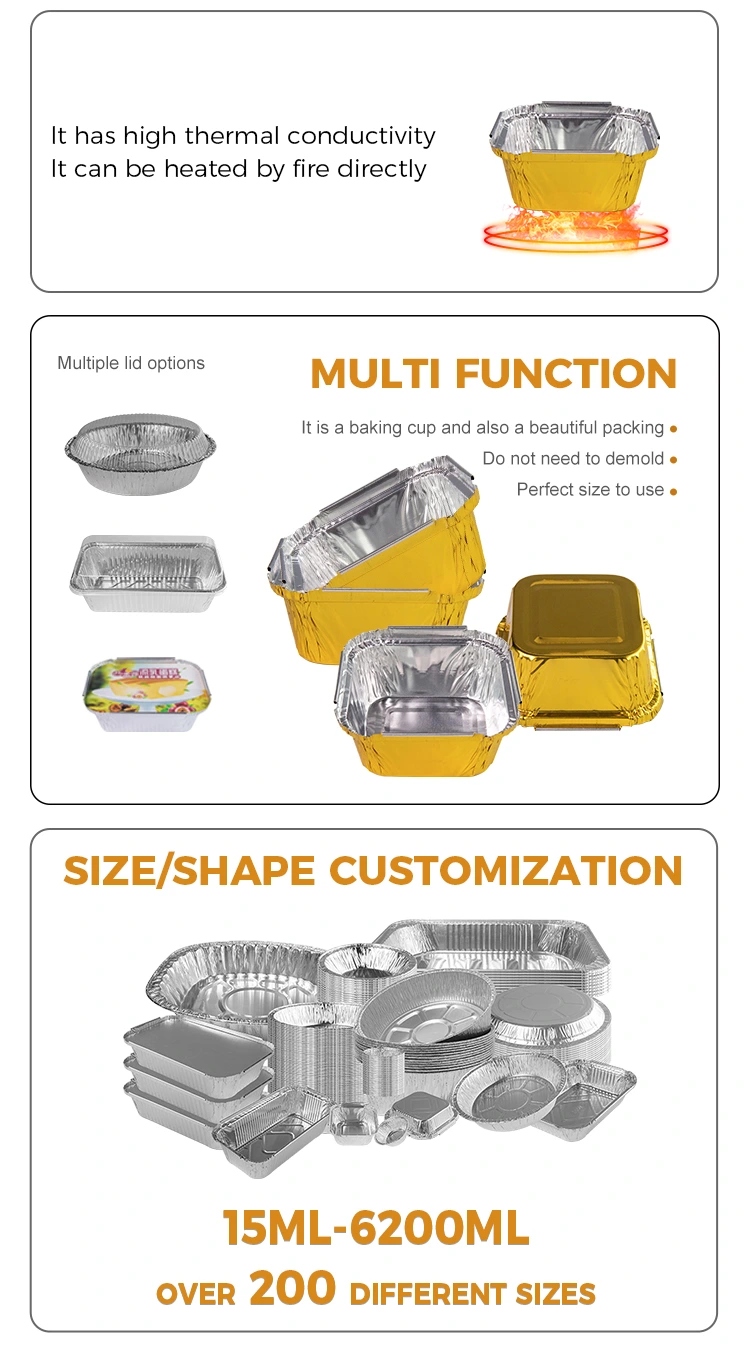 ​Yunchu aluminum foil Square baking oven Silver Aluminum Foil Containers protector is no-wash and multi-frying, waterproof and oil-draining, no need to clean, oven, air fryer, barbecue, steaming special, thickened material repeatedly used without deformation, the material is thick and can be cleaned with water, repeated use without pressure, can be matched with a variety of foods, such as baked cakes, cereal Zamrznjena, parna jajca, pekanja pudinga, sadna solata itd., Varno za vstop v materiale za stik s hrano, Yunchu strogo sledi zahtevam za izbiro zdravstvenih materialov, ki so na debelo, to je tudi embalaža, aluminijasta pokrivala kombinacijo naročil, ki jih naročite tudi z enim po meri.