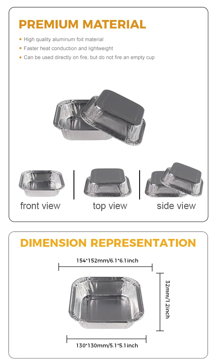 Yunchu Aluminium Foil Dobavitelj Square Cake Air Frier Silver Aluminium Foil Contaterscan se široko uporablja tudi v različnih prizorih, kot so: pečenje v peči, zračni cvrker, odprto ogrevanje plamena, parnik parni parnik in druga oprema Uporablja enotno toplotno prevodnost, enotno ogrevanje lahko uporabite. Aluminijasta folija Contaterscan se uporablja za peko majhnih tort, domačega jogurta, želeja, pečenega jajca, morskih sadežev in drugih živil, spodnji konkavni in konveksni dizajn, igrajo nedrsečo vlogo, popolnoma zviti ročni dizajn je mogoče uporabiti s hišnim ljubljenčkom, ki je popolnoma pregleden pokrov za zaklepanje in okusno hrano.