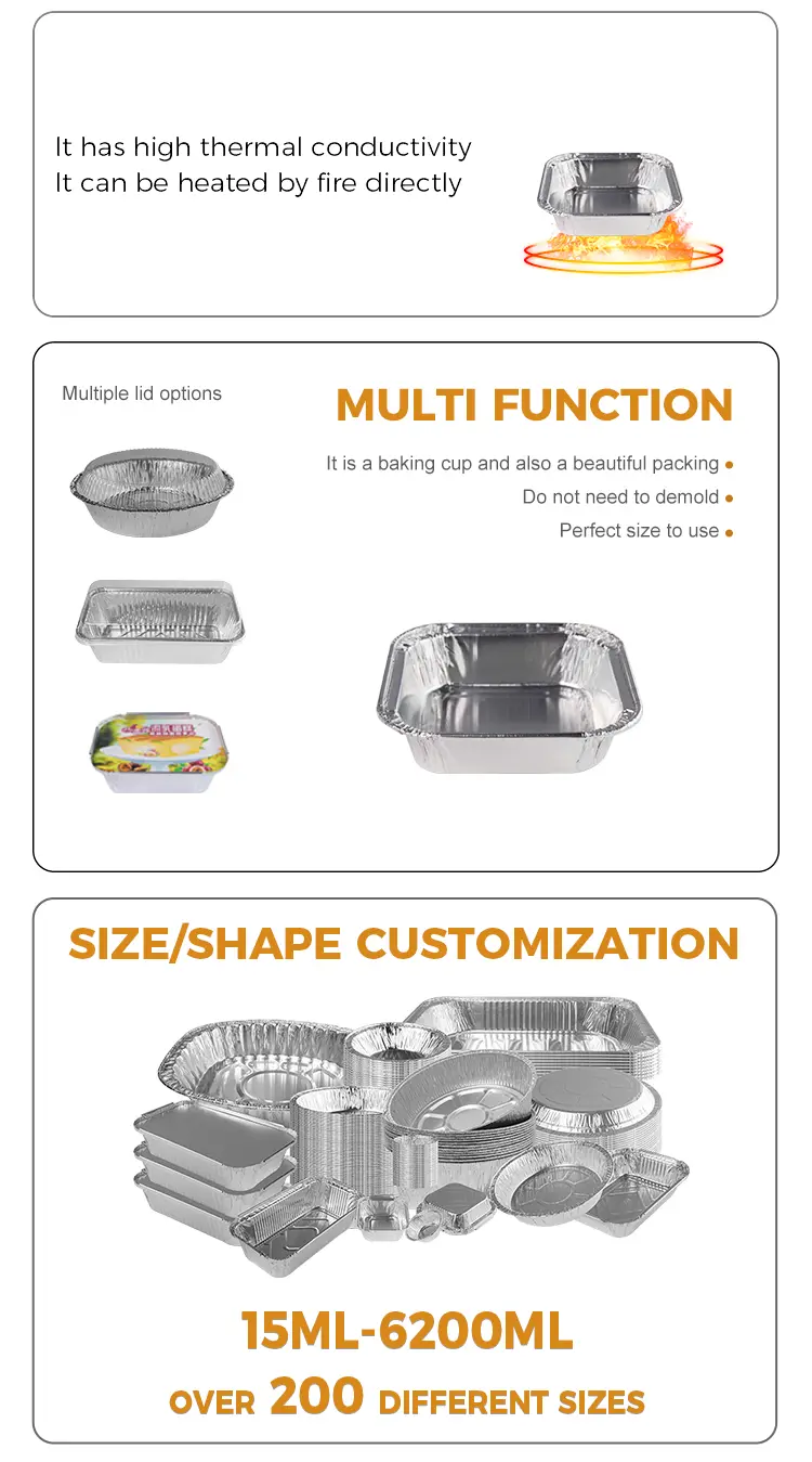 Yunchu aluminum foil supplier model 3217 Square cake air fryer Silver Aluminum Foil ContainersThis style is a home baking, air fryer, catering, take-out packaging, assembly line factory wholesale purchase products, with full curling design, will not scrape your hands when using, provide PET full transparent cover, can provide LOGO silk screen design customization, but the MOQ starts at 5000/piece, if you want to buy other products square Torta Air Fryer Silver Foil Silver Foil, na voljo so številne specifikacije in modele, ki jih lahko izbirate, se lahko obrnete na poslovno osebje za poizvedovanje.